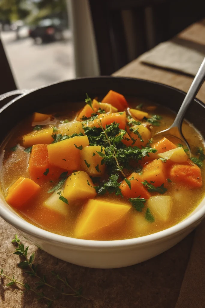 Fall Harvest Soup is a hearty, vegetable-forward dish made with seasonal produce like butternut squash, sweet potatoes, carrots, and aromatic herbs. It’s typically vegan, gluten-free, and easy to prepare in one pot, making it ideal for weeknight dinners or weekend meal prep.
